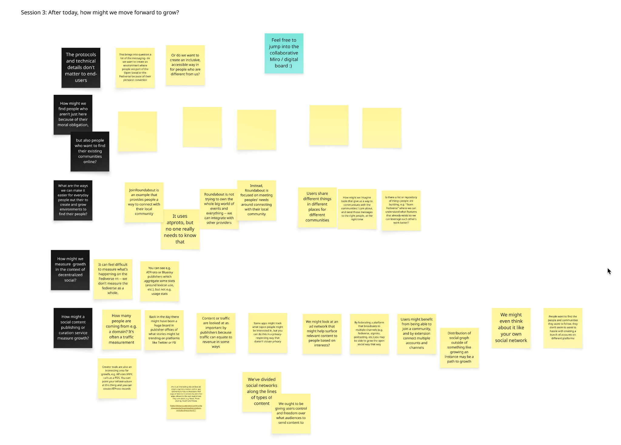 Meta note: more stickies etc in “whiteboard” from the session